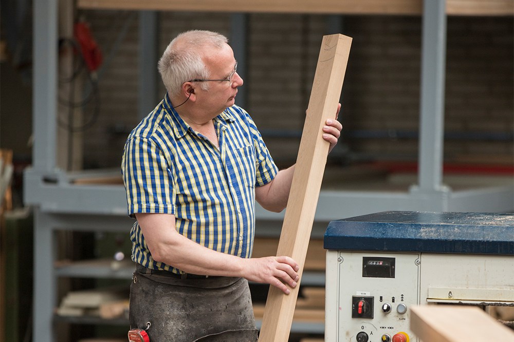 Met de Local Wood-collectie houden we de productieketen zo kort mogelijk. De collectie wordt door plaatselijke partijen gemaakt: van grondstof (hout) en verwerking (zagen en drogen) tot productie. Al het hout voor deze collectie komt uit de omgeving van onze fabriek in Winterswijk: deels uit Nederland en deels uit West-Duitsland. Dit bespaart veel kilometers en dus veel energie.