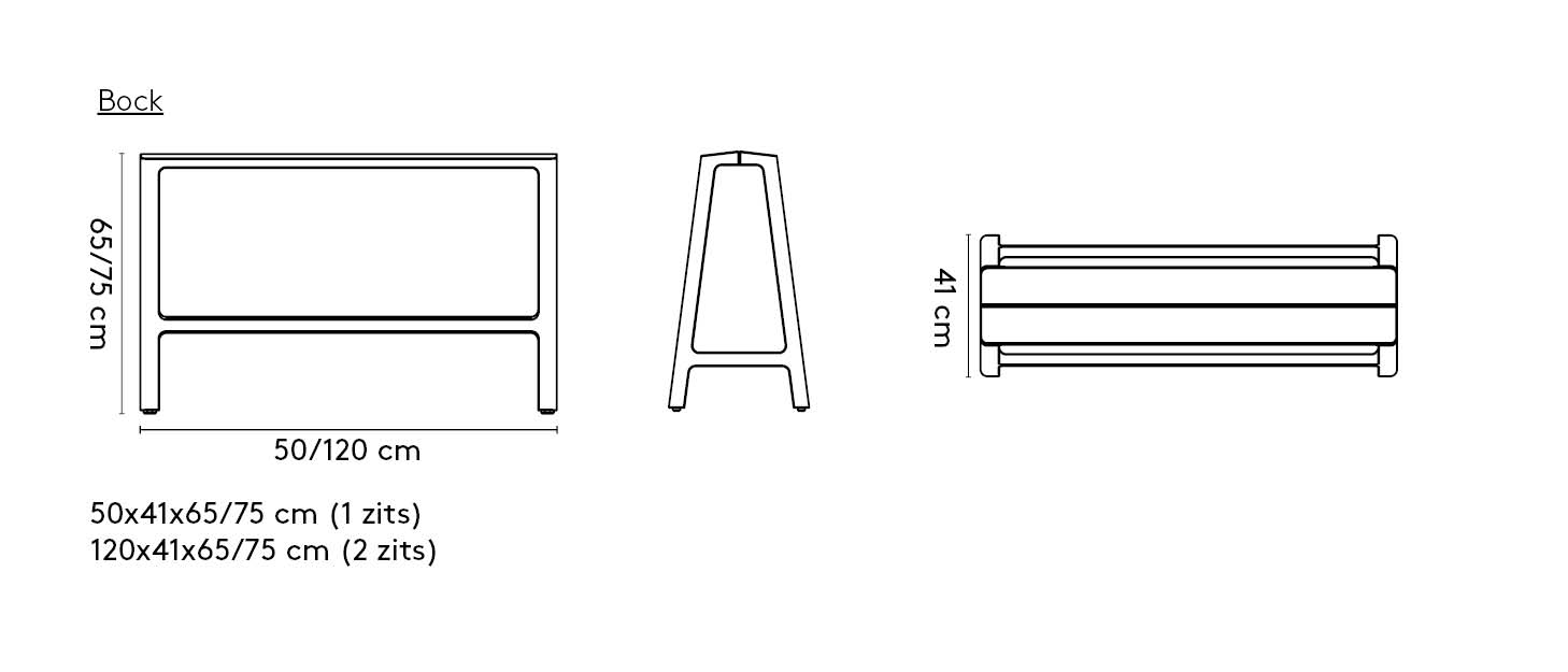 Bock is verkrijgbaar in een één- of tweepersoons versie en in twee hoogtes (65 en 75cm). Indien de Bock vrijstaand wordt toegepast, is er een optie voor Bock Tablet, een accessoire dat dient als aflegvlak. Geproduceerd van massief eikenhout uit duurzaam beheerde bossen (STIP, FSC of PEFC) en afgewerkt met een watergedragen lak.