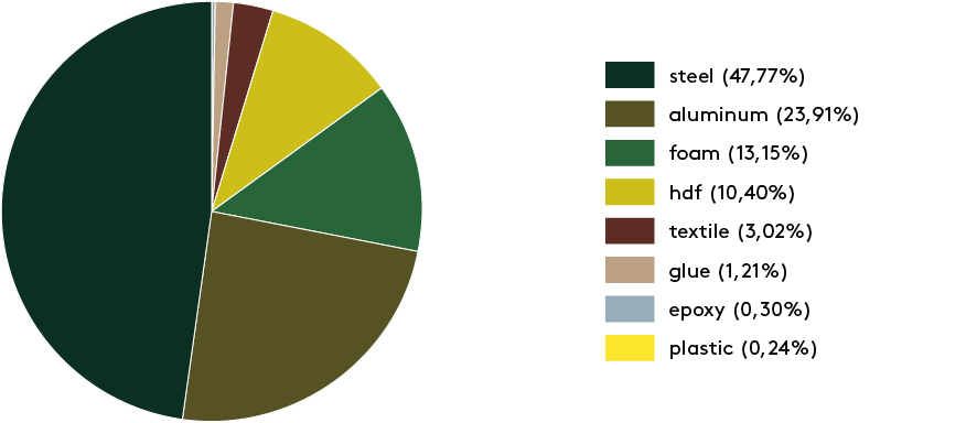 € 1749,-Wij maken voor ieder product een "product eco passport". Een duidelijk overzicht van de materiaalsamenstelling met gewichtspercentages van ieder product.