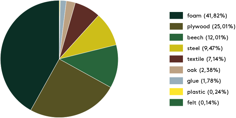 € 1071,-Wij maken voor ieder product een "product eco passport". Een duidelijk overzicht van de materiaalsamenstelling met gewichtspercentages van ieder product.