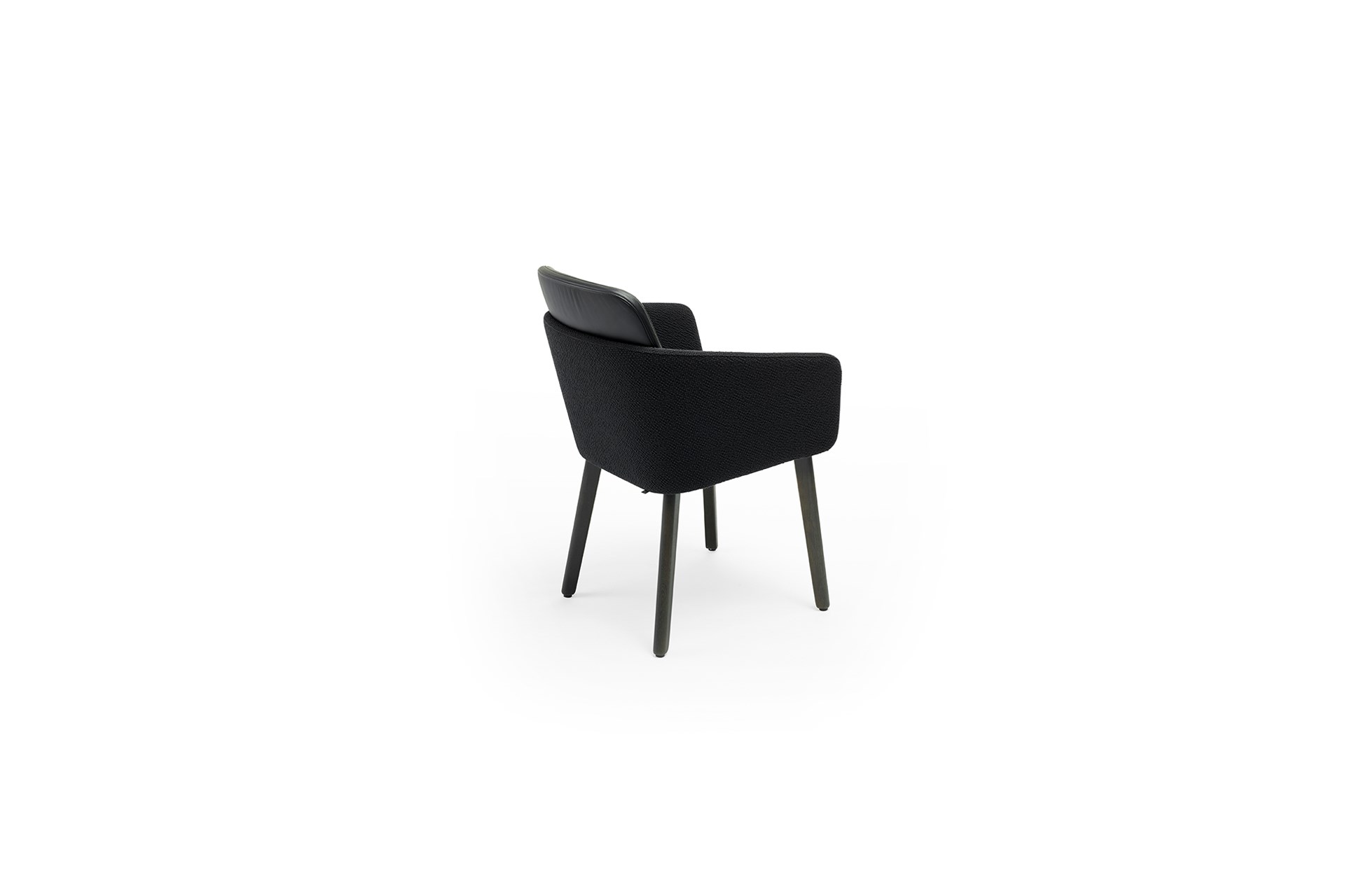 Laze is een luxe eetkamerstoel met armleuning en onderscheidt zich vanwege een uitermate hoog zitcomfort. Dit comfort word gecreëerd door de ‘losse zit en rug kussens’ en een elastisch net in de zitting van de stoel. Laze heeft een elegante en verfijnde uitstraling. De strakke gestoffeerde kuip met de losse kussens geeft een mooi contrast en creëert daar waar het nodig is comfort. Doordat het zit- en rug kussen in een ander materiaal (stof of leder) kunnen worden uitgevoerd, zijn er bijzondere materiaal combinaties mogelijk. Het schuim dat voor deze stoel gebruikt wordt, is relatief duurzaam: Naturalis. Dit is een schuim waarbij een deel van het fossiele materiaal is vervangen door een natuurlijke olie. Tussen het schuim en de stoffering wordt wol toegepast in plaats van een “gangbaar” synthetisch materiaal. Het onderstel van de Laze is gemaakt van massief eiken en kan worden uitgevoerd in alle Arco beitskleuren.