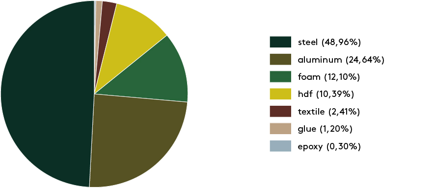 € 2021,-Wij maken voor ieder product een "product eco passport". Een duidelijk overzicht van de materiaalsamenstelling met gewichtspercentages van ieder product.