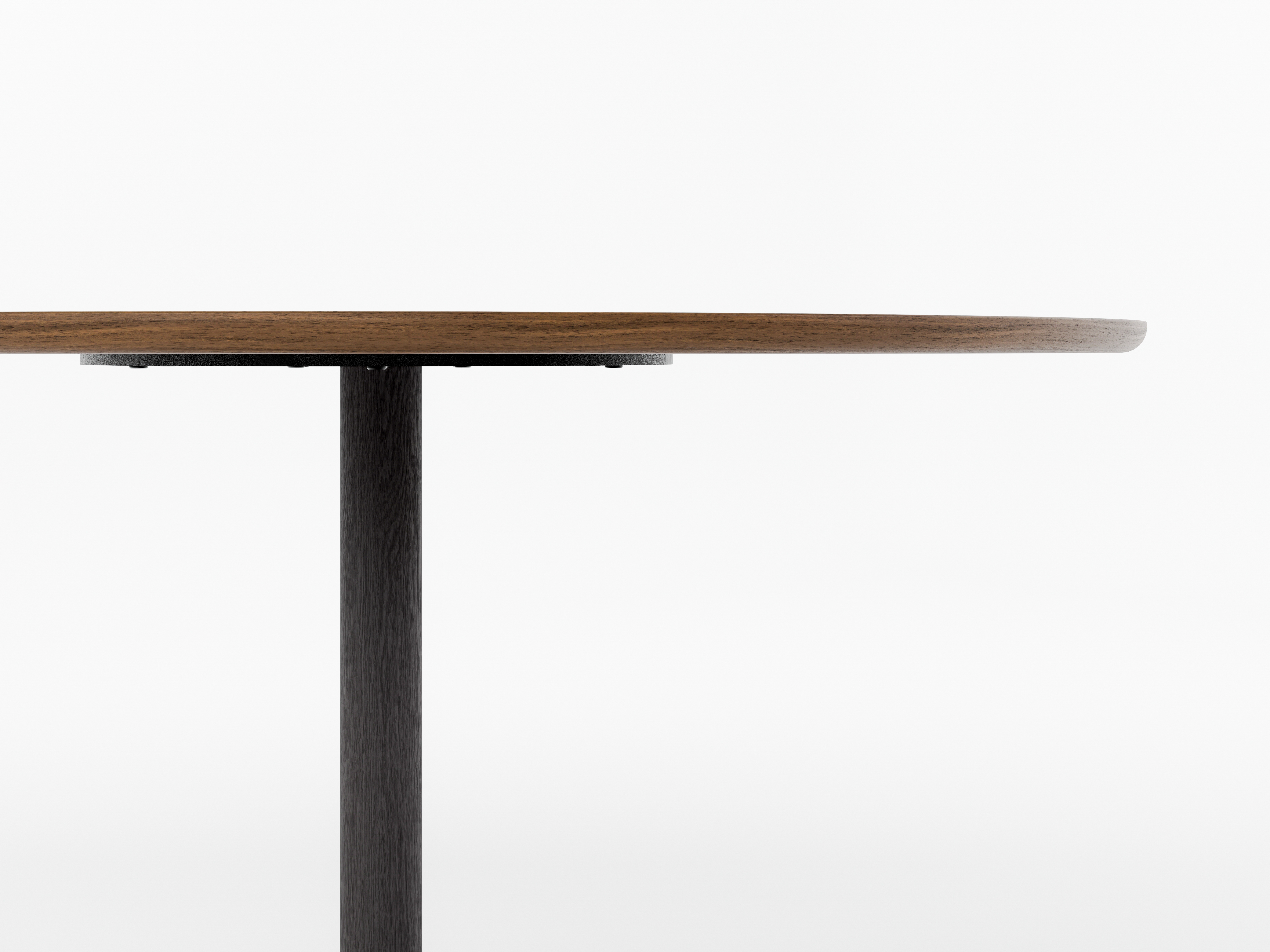Enso is een houten tafel, ontworpen door Arco Design Studio, met een naadloos coherent design: zowel het tafelblad als de zuil en voet zijn volledig van hout.