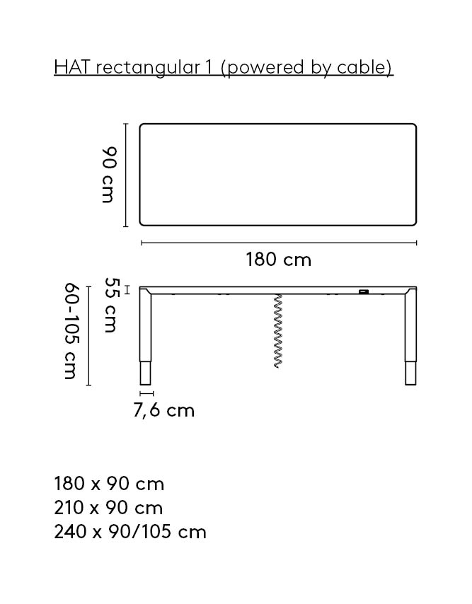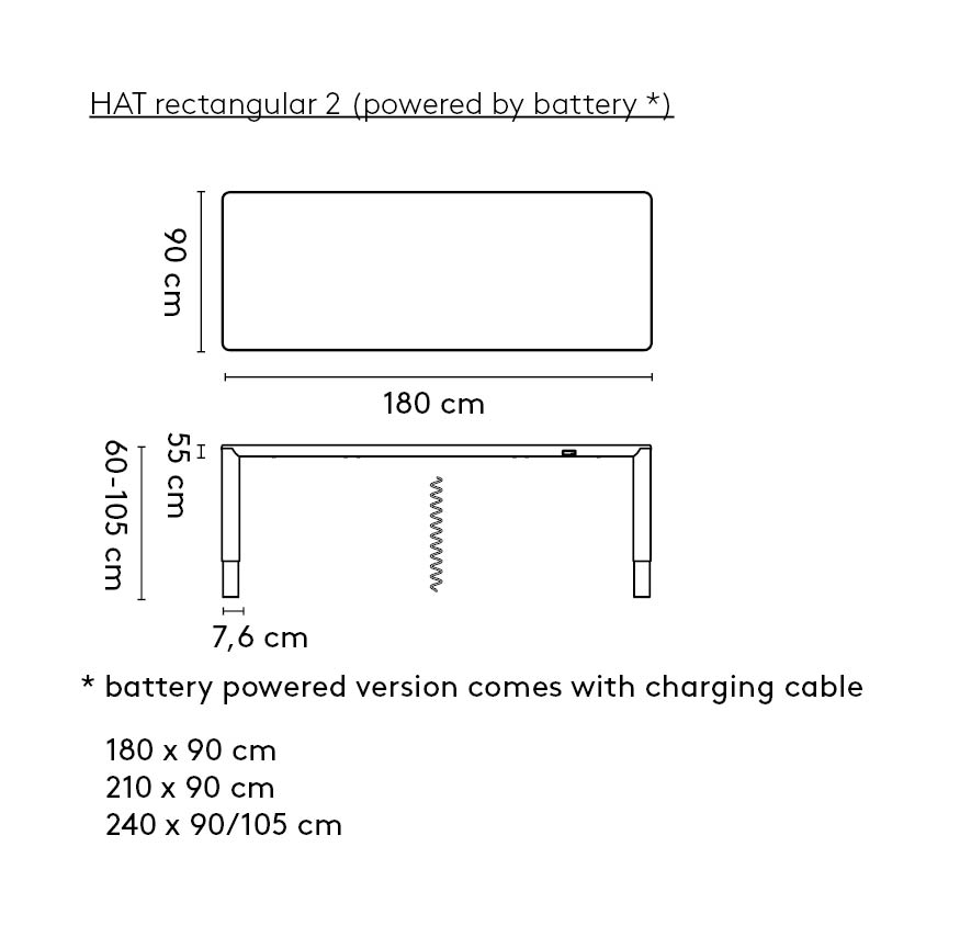 Het slimme van deze tafel zit ‘m in de poten. Hierin zit zowel een motortje als een mechanisme waarmee de hoogte kan worden aangepast. Een accu zorgt voor maximale flexibiliteit. In plaats van aan kabels gebonden, wordt deze tafel zo ‘mobiel’. Je kunt hem makkelijk verplaatsen naar de plek waar de omgeving om vraagt.
