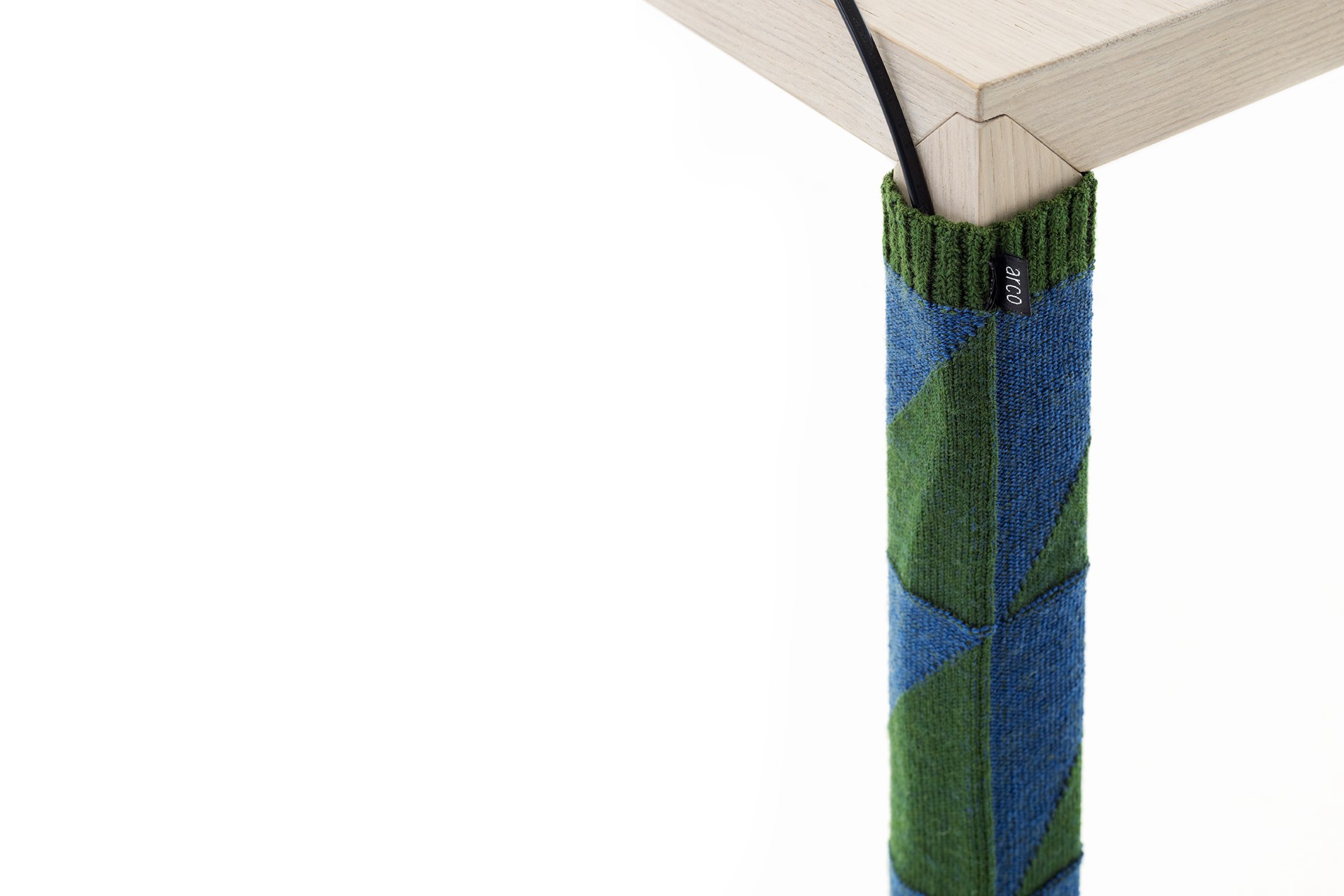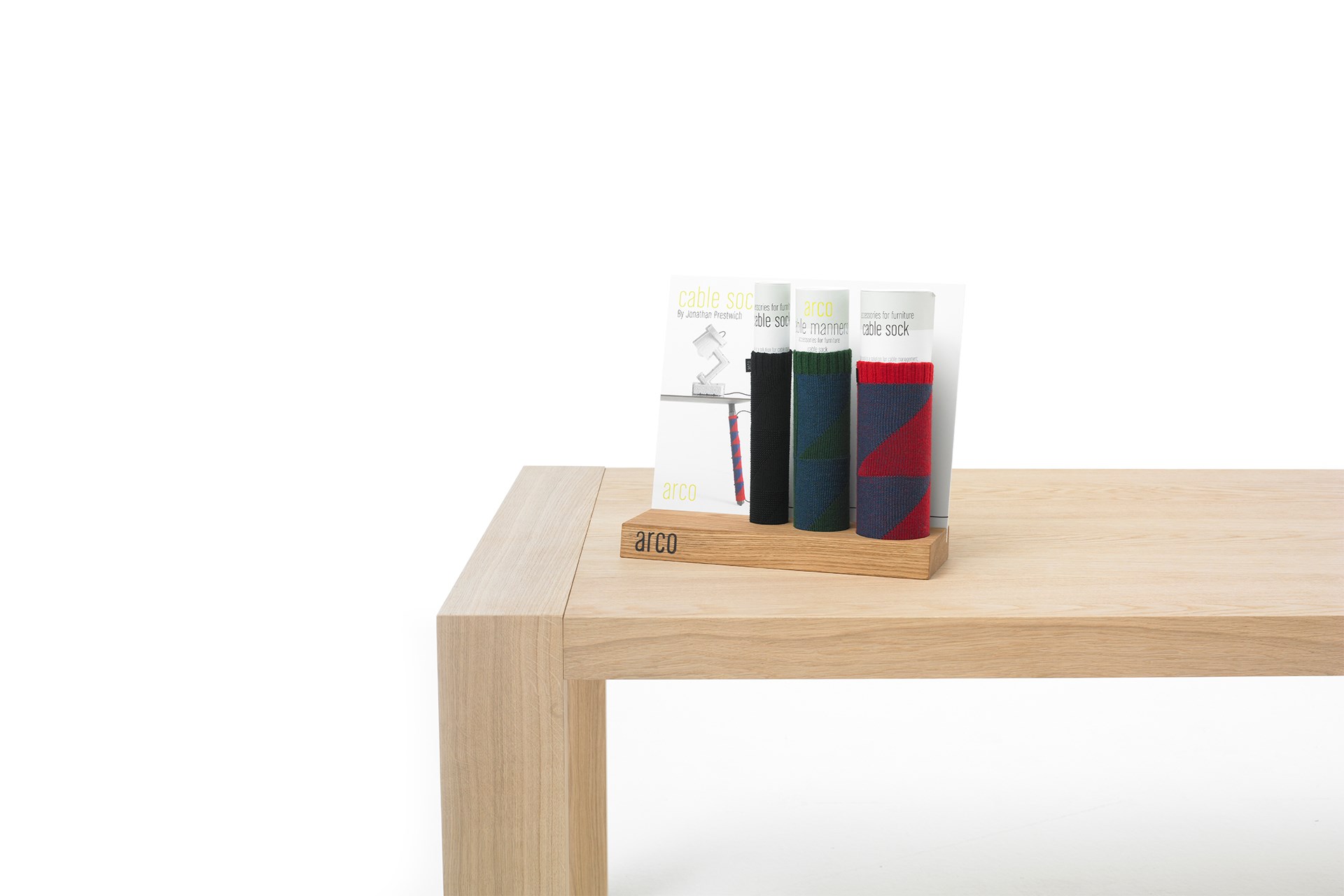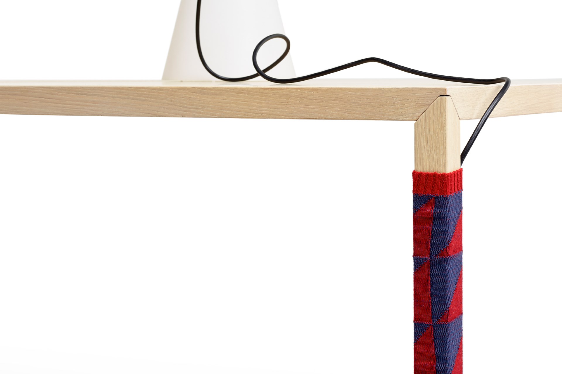 Om de tafel net zo flexibel te maken als onze levensstijl met laptops, iPads en het Nieuwe Werken, bedacht Jonathan Prestwich de Cable Sock - een lowtech oplossing voor hightech apparaten. De 3D gebreide Cable Sock is een mooie oplossing voor de wildgroei aan kabels rond je tafel: de smalle kous houdt ze bij elkaar en leidt ze keurig langs de tafelpoot naar de vloer en richting het stopcontact. Net als echte kousen zijn ook deze verkrijgbaar in allerlei kleuren en maten: small, medium en large, passend rond verschillende soorten tafelpoten. De Cable Sock is te combineren met een Cable Net.