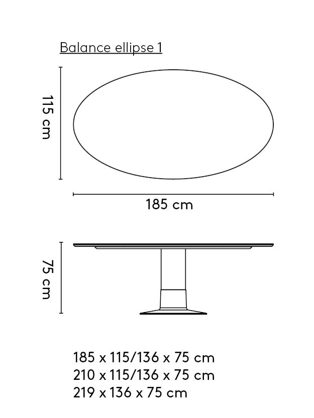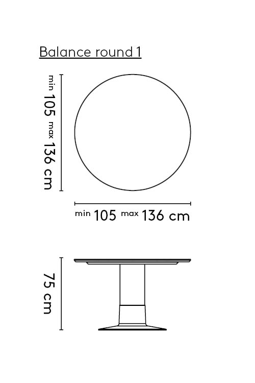 Die runden Formen verleihen diesem praktischen Ess- oder Konferenztisch ein zeitloses Design. Die runde oder ellipsenförmige Tischplatte wird von einer robusten Säule getragen, so dass Sie unter dem Tisch viel Beinfreiheit haben. Der Tisch Balance ist als fester Tisch und als ausziehbarer Tisch lieferbar und in zahlreichen Ausführungen erhältlich. So bestimmen Sie selbst das Aussehen von Tischplatte, Säule und Fuß.