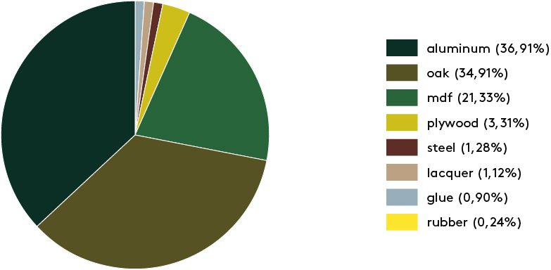 Wir erstellen für jedes Produkt einen „Product eco passport“. Ein klarer Überblick über die Materialzusammensetzung und deren Gewichtsanteile eines Produkts.