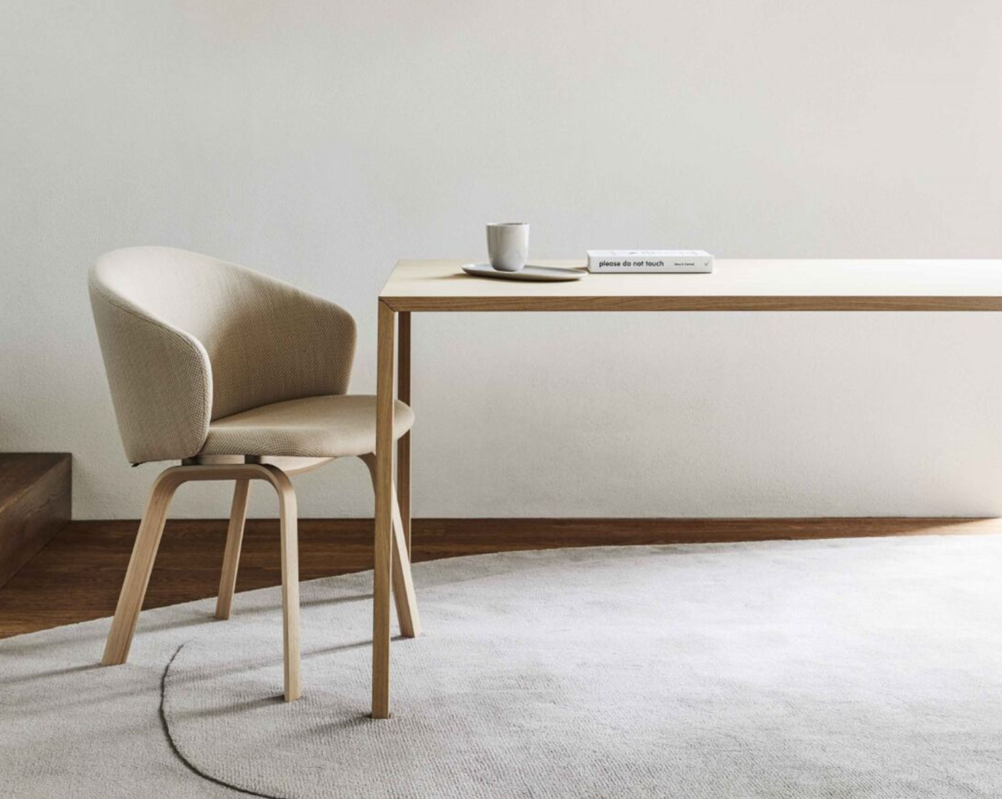 The Slim collection is framed with a thin layer of wood veneer, glued to the strong sandwich construction of steel and honeycomb. The veneer is made of PEFC and/or FSC® certified wood and provides a high-quality appearance and tactility. The veneer makes optimal use of the tree trunk and ensures a beautiful, even wood structure on the table.
