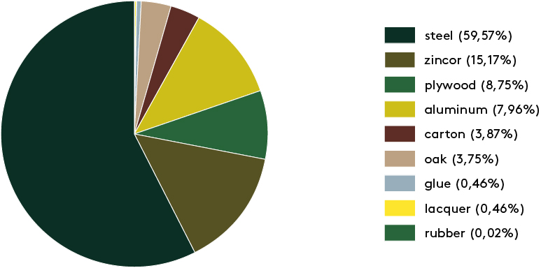 Wir erstellen für jedes Produkt einen „Product eco passport“. Ein klarer Überblick über die Materialzusammensetzung und deren Gewichtsanteile eines Produkts.