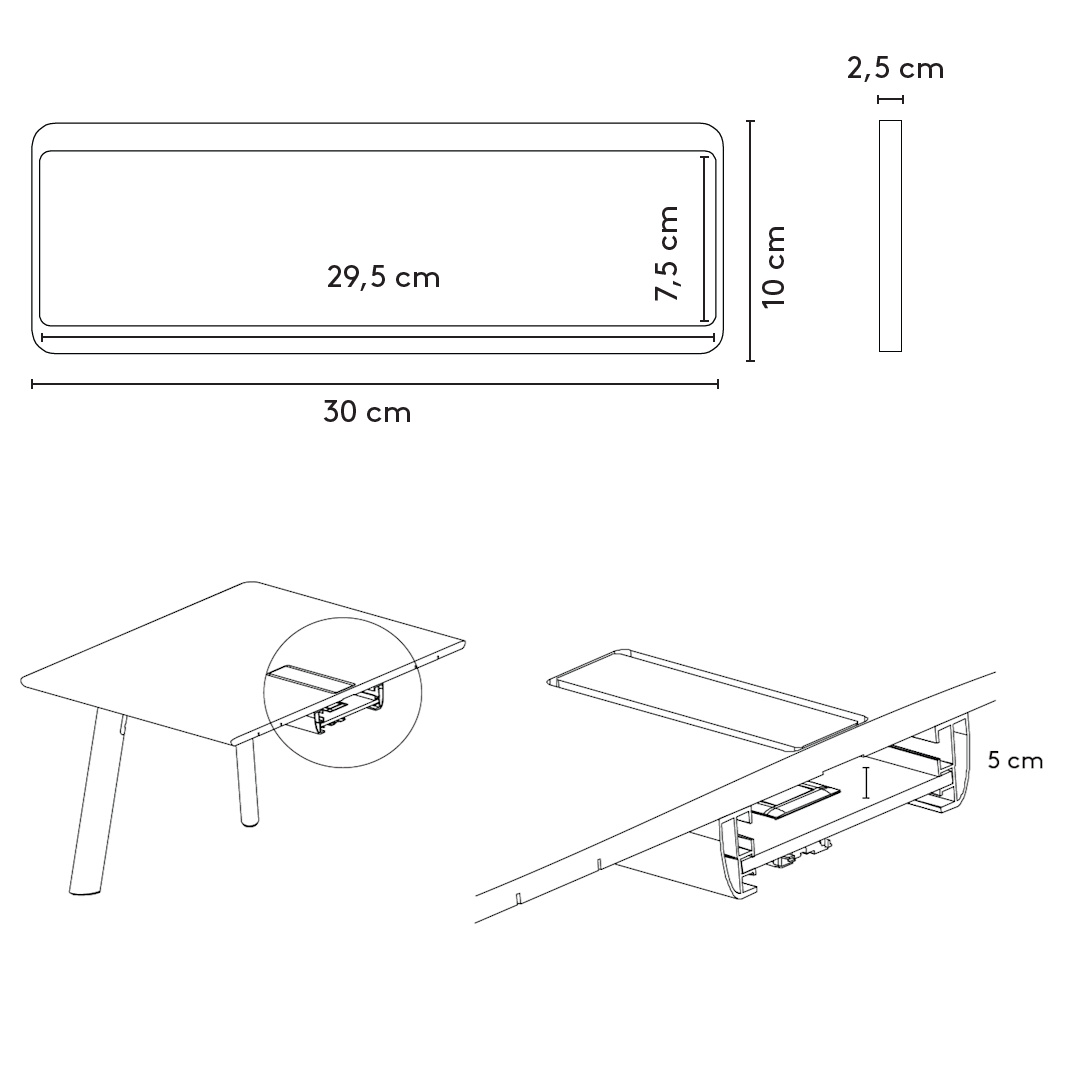 Nicht alle Lösungen sind mit jedem Arco-Tisch kompatibel. Konsultieren Sie bitte die Cable-Management-Übersicht in unserem Home & Work Catalogue für eine Übersicht der Möglichkeiten pro Tisch.
