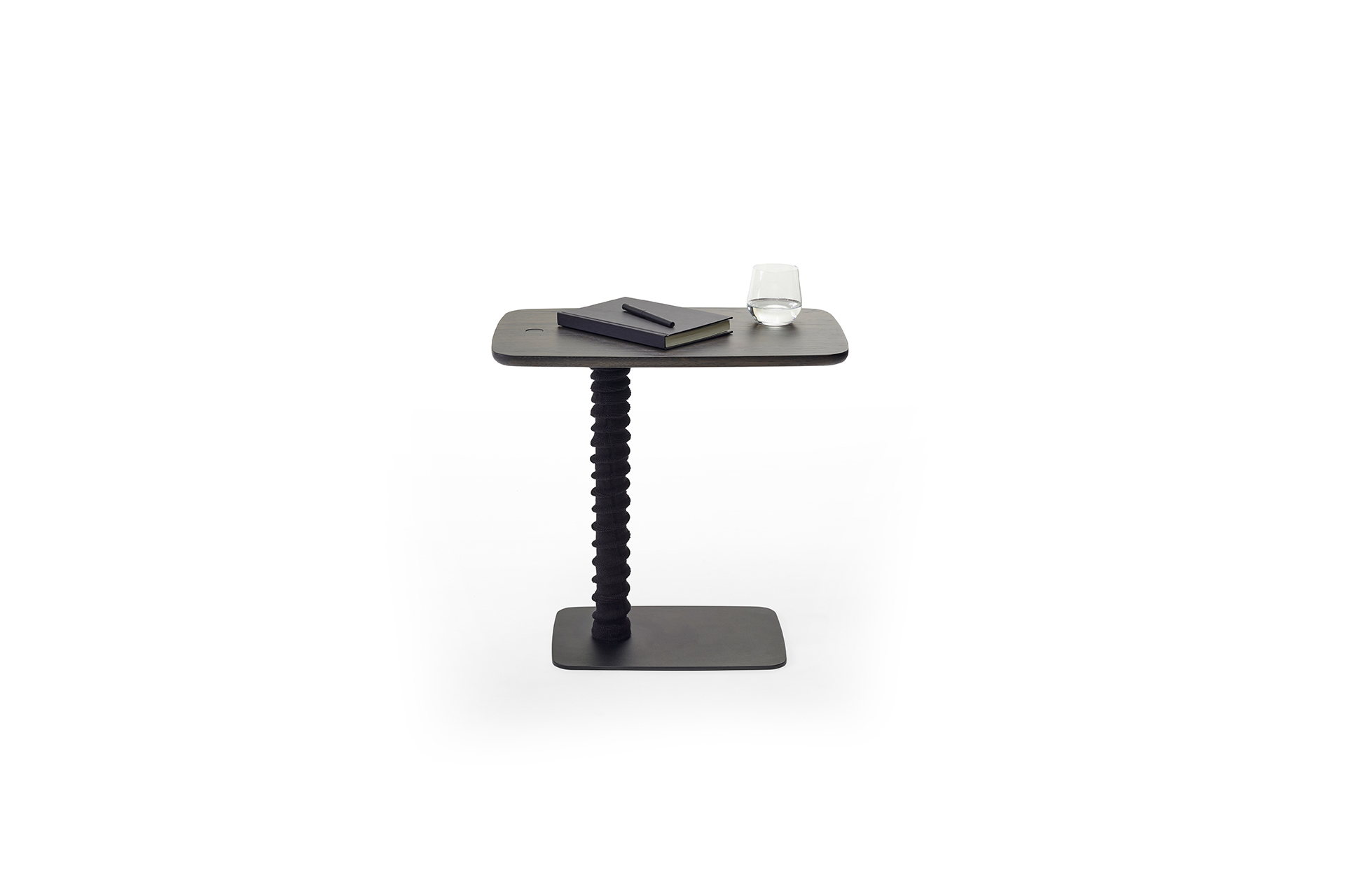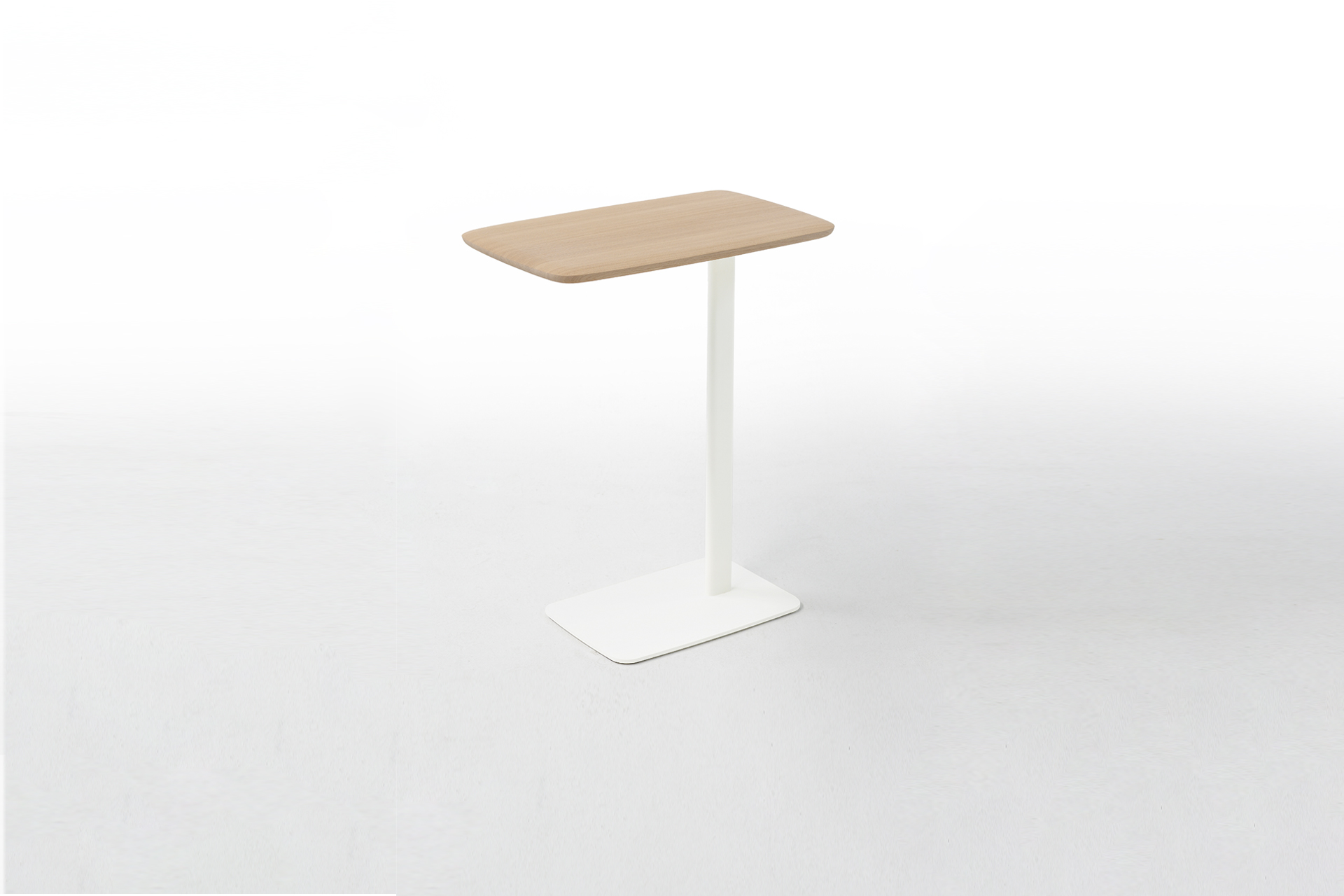 Eine ganze Familie aus praktischen Tischen für die Momente, an denen Arbeiten und Wohnen ineinander übergehen. Schnell eine Notiz machen, den Laptop abstellen oder einige Unterlagen durcharbeiten, kurz: das bekannte Multi-Tasking, das überall im Haus stattfinden kann. Die Tische haben eine organisch geformte Tischplatte mit abgerundeten Ecken, stehen auf einem eleganten Fuß, so dass sie zum Sofa, an den Sessel oder Esstisch gestellt werden können. Zusätzlich gibt es jetzt auch ein Utensil das höhenverstellbar ist.