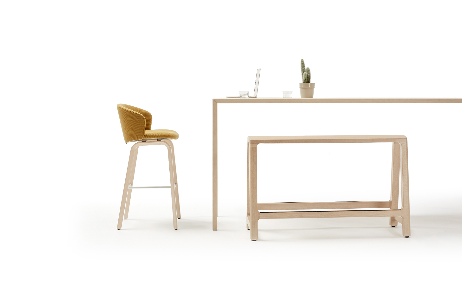 Der Close Barstool ist ein sehr bequemer Hochstuhl, der ideal mit den Stehtischen von Arco kombiniert werden kann – eine perfekte Kombination für kurze informelle Treffen oder für Arbeitsplätze, wo sich Stehen und Sitzen abwechseln. Durch sein wohnliches Erscheinungsbild eignet sich der Close Barstool ebenso gut für den Einsatz außerhalb der Bürowelt, ob für die Theke in der privaten Küche oder für die Gastronomie. Die Hockerversion ist wahlweise in einer Höhe von 65 oder 75 cm mit einem U-Fuß aus Buche mit Eichenfurnier erhältlich. Die Fußstütze besteht aus Metall mit einer Epoxidlackierung in Hellgrau oder Schwarz.