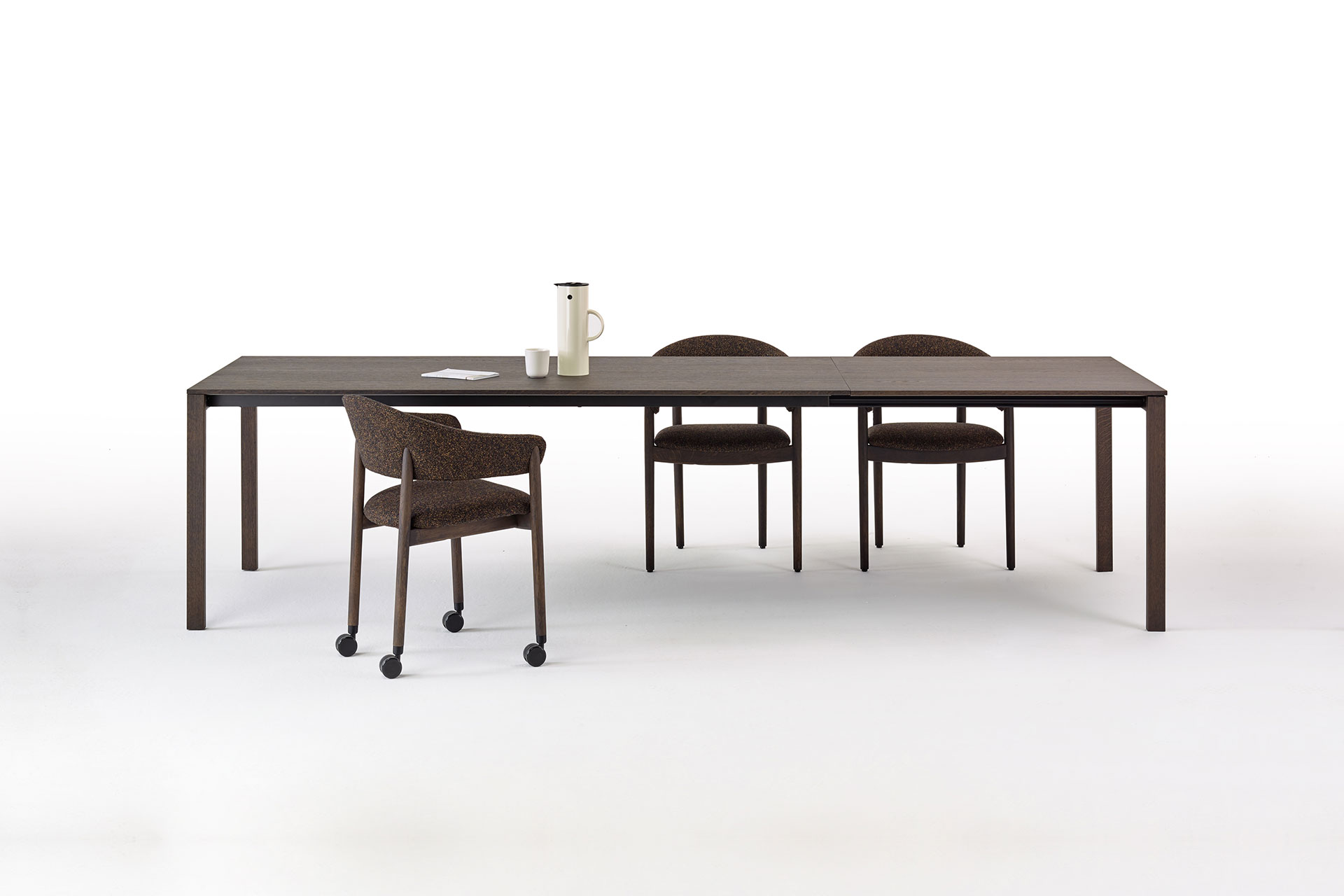 Mit seinem zeitlosen, kompakten und minimalistischen Design fügt sich der Extend in jeden Raum ein, ganz gleich, welche ästhetischen oder räumlichen Anforderungen bestehen –auch in Stadthäusern oder Studio-Apartments. Dank seiner schlichten Form lässt sich er sich mit unterschiedlichen Stühlen kombinieren, so gewagt ihr Design auch sein mag. Dieses Understatement setzt sich fort in einer unsichtbaren Naht und in einer Holzmaserung, die sich über den ganzen Tisch erstreckt. Mit anderen Worten: Dass es sich um einen Ausziehtisch handelt, sieht man erst, wenn man ihn auszieht. Â