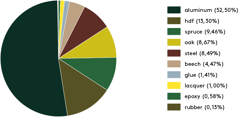 Wir erstellen für jedes Produkt einen „Product eco passport“. Ein klarer Überblick über die Materialzusammensetzung und deren Gewichtsanteile eines Produkts.