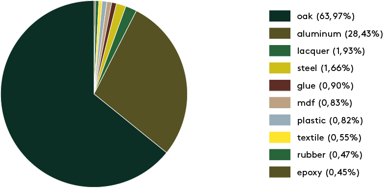 Wir erstellen für jedes Produkt einen „Product eco passport“. Ein klarer Überblick über die Materialzusammensetzung und deren Gewichtsanteile eines Produkts.