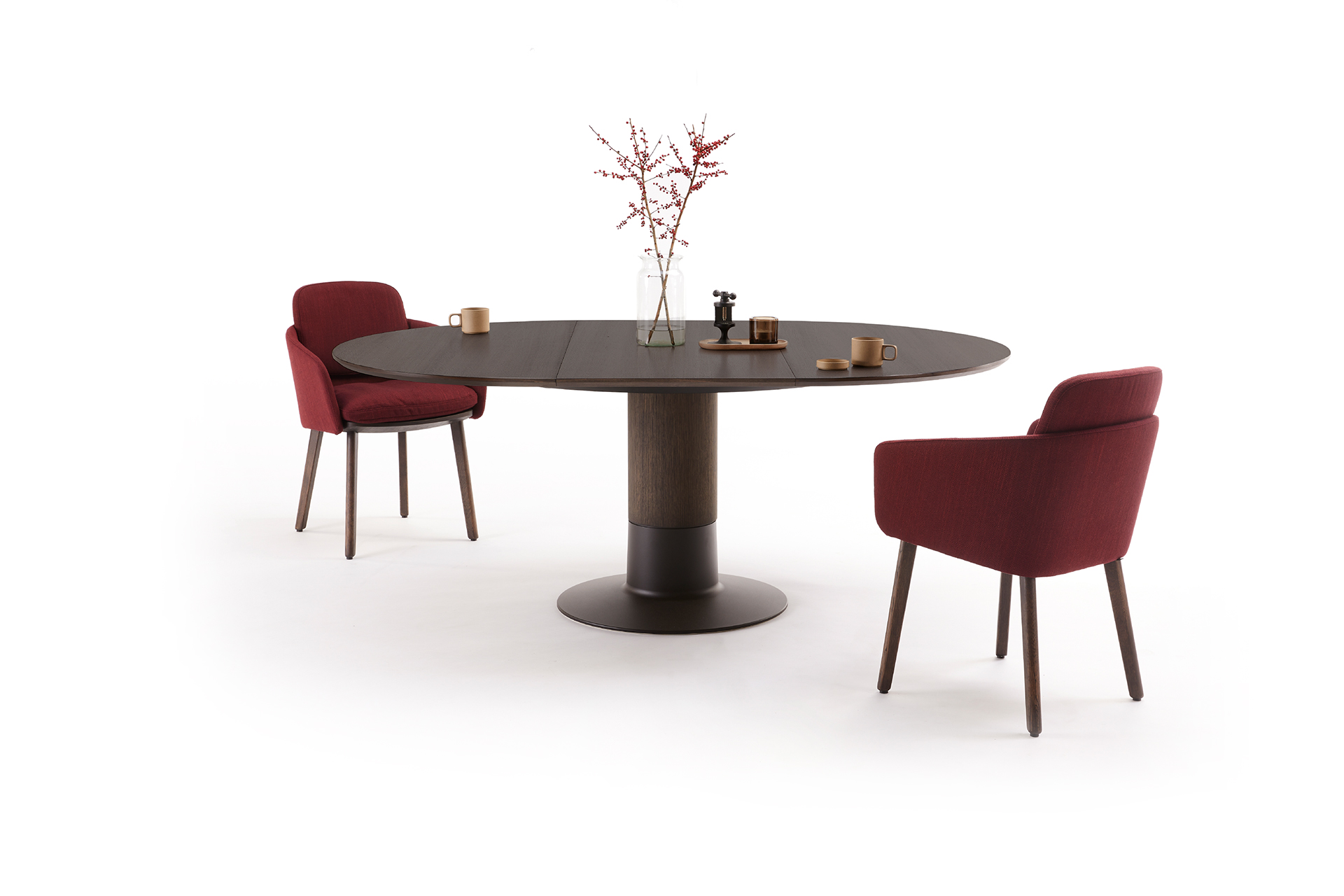 Die runden Formen verleihen diesem praktischen Ess- oder Konferenztisch ein zeitloses Design. Die runde oder ellipsenförmige Tischplatte wird von einer robusten Säule getragen, so dass Sie unter dem Tisch viel Beinfreiheit haben. Der Tisch Balance ist als fester Tisch und als ausziehbarer Tisch lieferbar und in zahlreichen Ausführungen erhältlich. So bestimmen Sie selbst das Aussehen von Tischplatte, Säule und Fuß.