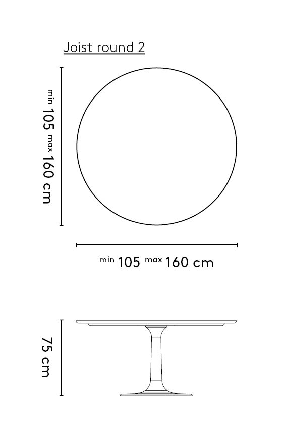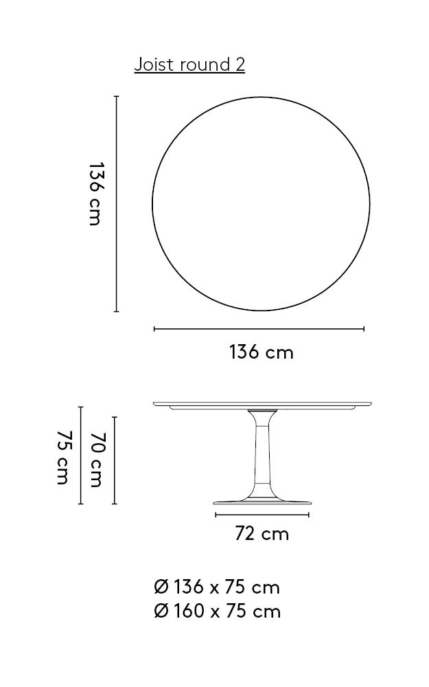 Der (Ess-)Tisch Joist ist dank seiner runden Form ein echtes Urmodell. Durch die zentrale Säule gibt es viel Bein- und Bewegungsfreiheit. Die runde Form macht den Joist zu einem sozialen Tisch: Alle können einander ansehen. Die zentrale Säule besteht aus massiver Eiche oder Nussbaum, und steht auf einem Fuss aus Aluminium. Das Aluminium, das für diesen Tisch verwendet wurde, wird von einem niederländischen Partner geliefert.