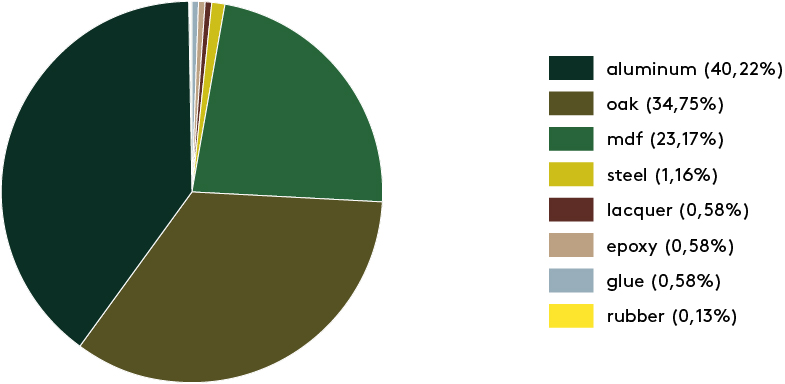 Wir erstellen für jedes Produkt einen „Product eco passport“. Ein klarer Überblick über die Materialzusammensetzung und deren Gewichtsanteile eines Produkts.