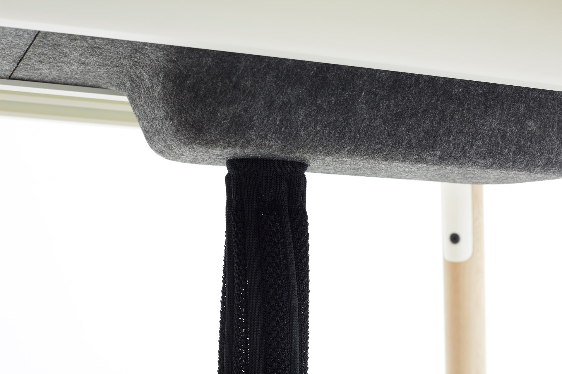 Our cable management solutions integrate seamlessly into our tables, keeping connections accessible yet discreetly concealed. The Zipper Sock guides cables directly downward from an electrification point. This way, cables are always neatly and conveniently concealed under the table. The Zipper Sock is particularly useful with CM06 and CM07.