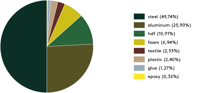 € 961,-All our products are provided with a product eco passport. This is a clear overview of the product, with the composition of the materials and their percentages by weight.