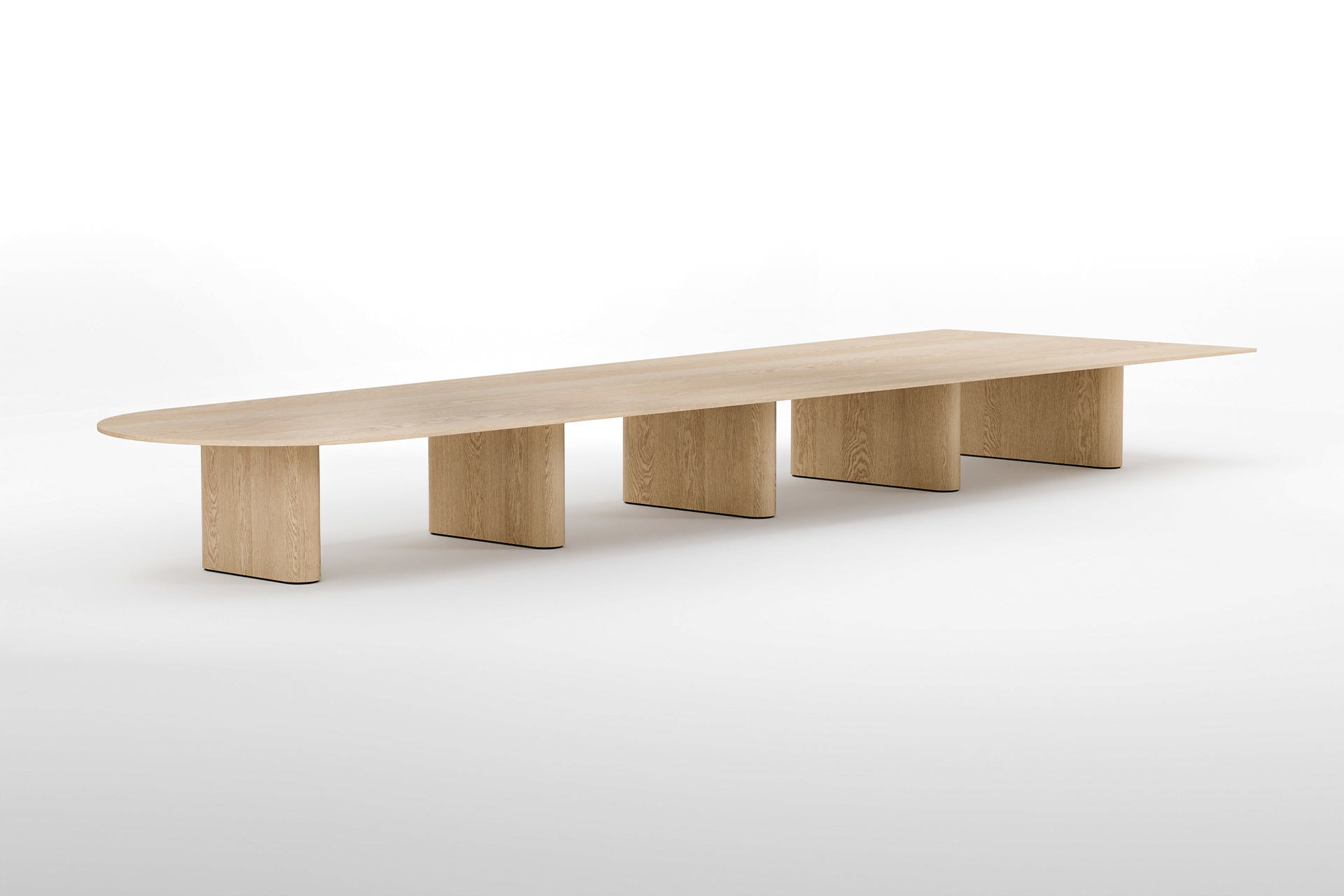 The Kami, by designer Joost van der Vecht, is a wooden modular table designed to be configured easily and according to your wishes, with endless length options in different shapes. From a small, intimate setting to a great eye-catcher in a meeting and boardroom environment. The solid wooden design table is available in an oval and round shape for both the columns and its tabletop, high and low. The modern table combines sustainable design and organic shapes into a timeless piece for the living and working environment.