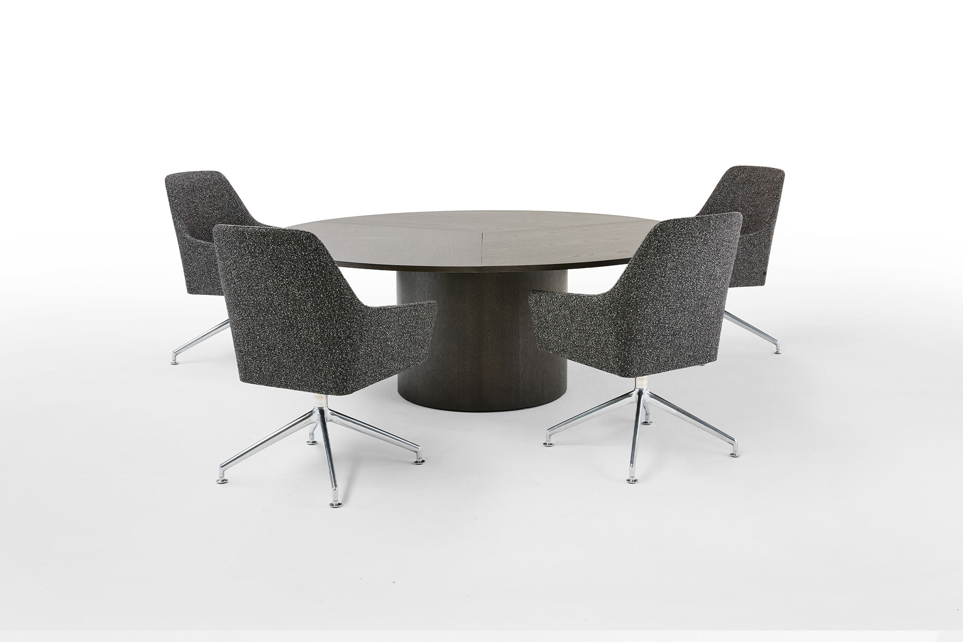The Kami collection continues to expand with new columns and various sizes. The newly introduced Kami XL Round offers a generous tabletop with a diameter ranging from 150 cm to 250 cm, while the Kami XL Trapezium introduces a trapezium-shaped tabletop, making the collection even more versatile for meeting spaces and collaborative office environments.