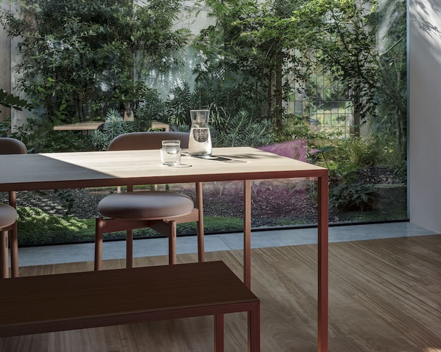 With the extensive Slim family, the collection can be used in both the living and working environment. It can serve as a thin dining table for an intimate family setting or an ultra-long meeting table. Find below a beautiful selection of Slim variants applied in projects worldwide. Each version and composition fits its environment.