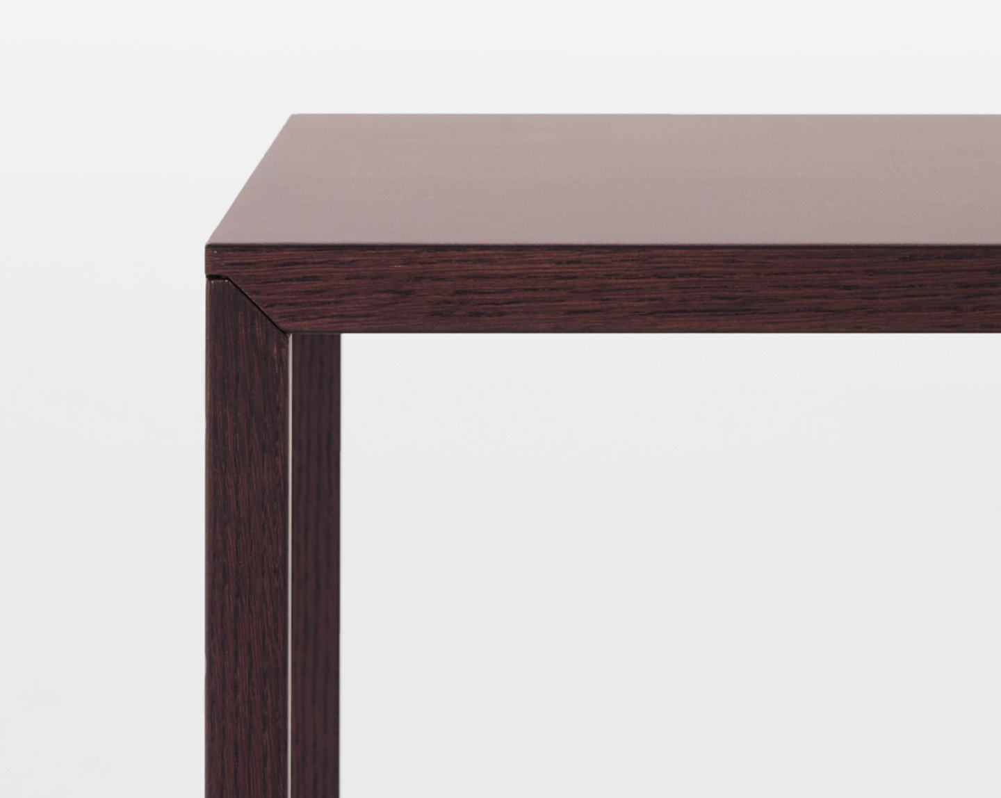 The Slim collection is framed with a thin layer of wood veneer, glued to the strong sandwich construction of steel and honeycomb. The veneer is made of PEFC and/or FSC® certified wood and provides a high-quality appearance and tactility. The veneer makes optimal use of the tree trunk and ensures a beautiful, even wood structure on the table.