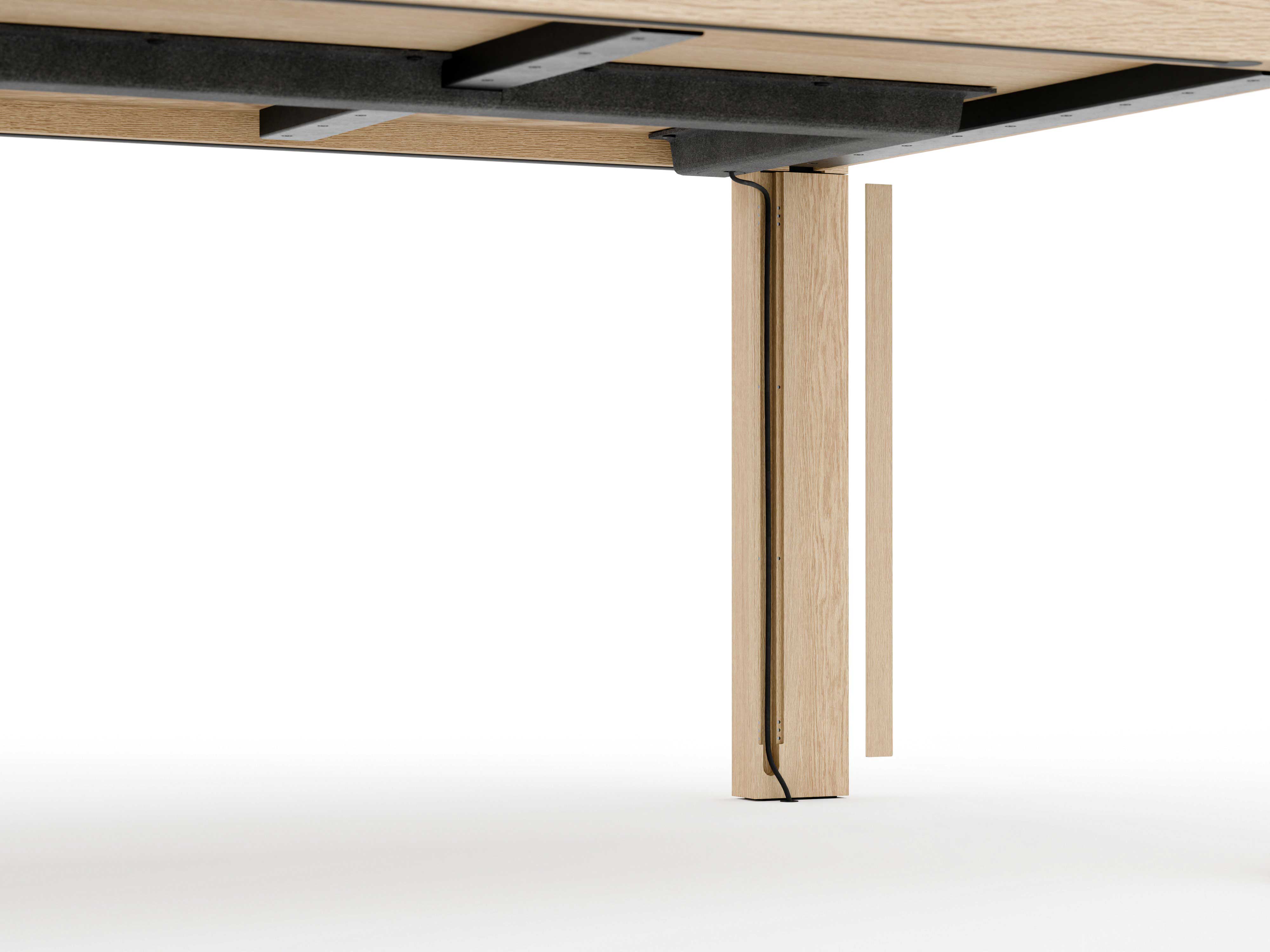 CM22 is a built-in cable duct, where the duct is faced towards the inside of the table. This is only possible in the Essenza rectangular 1 and Essenza rectangular XL leg. When ordering, it's important to specify the position of the desired leg with the cable duct.