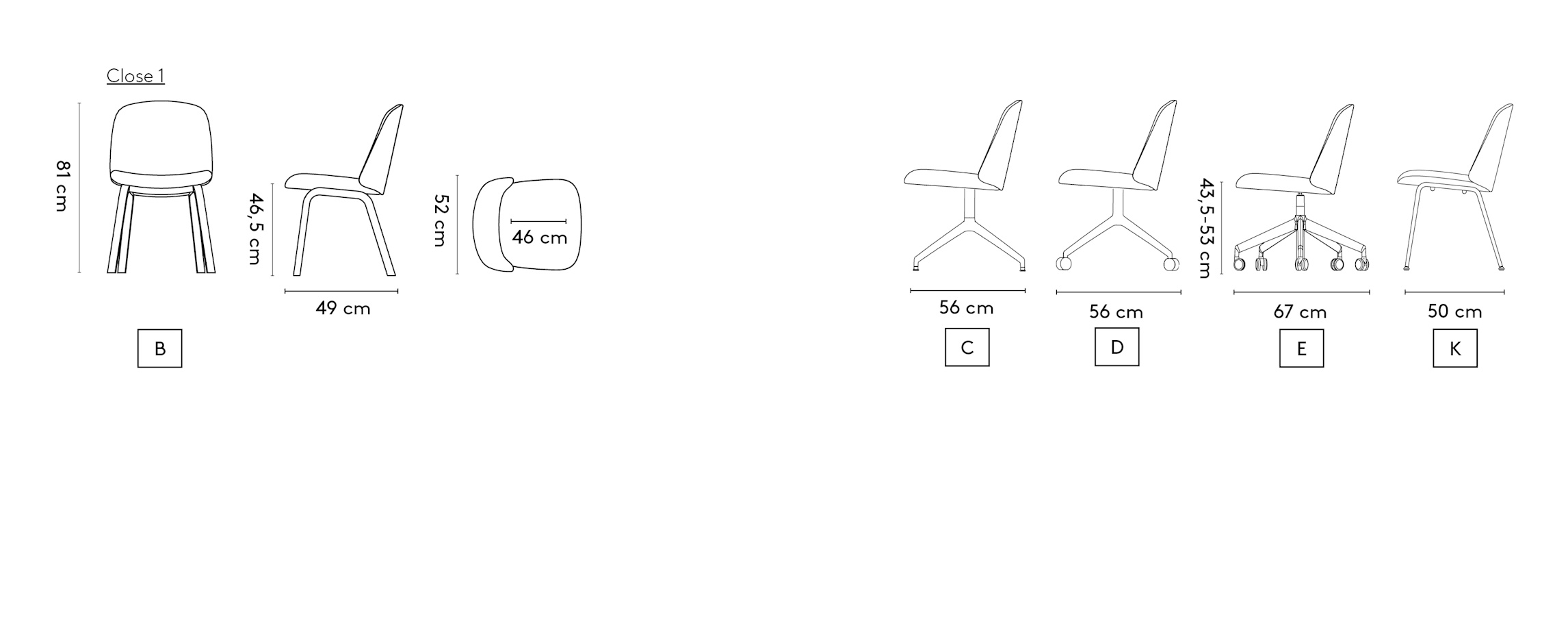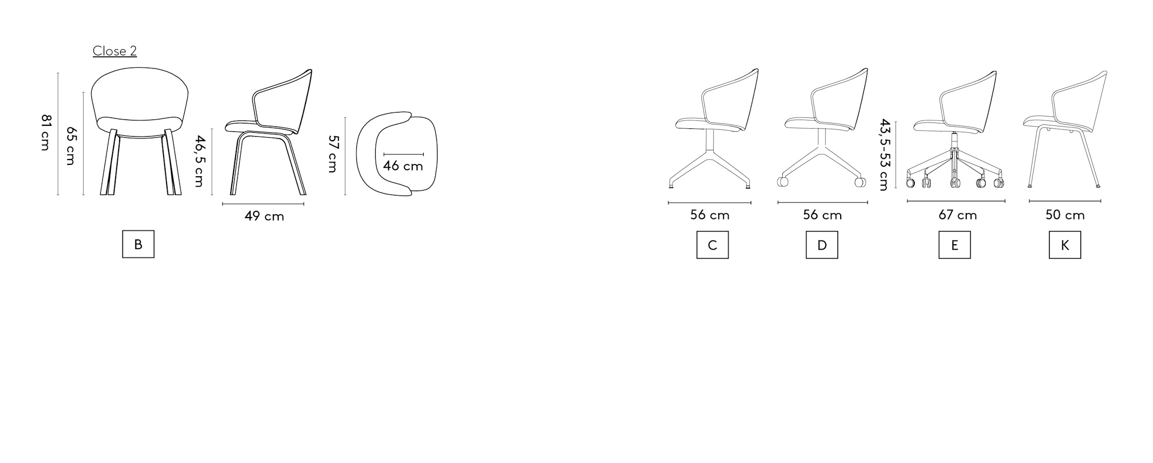 The chairs from the Close family are as comfortable as they look. The round backrest provides a lot of seating comfort because it pleasantly shapes itself around you. The Close family consists of the Close, Close Plus, Close Bench, Close Lounge, and Close Barstool. The elegance of this seating furniture flows from its beautiful simplicity.