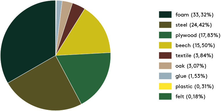 All our products are provided with a product eco passport. This is a clear overview of the product, with the composition of the materials and their percentages by weight.