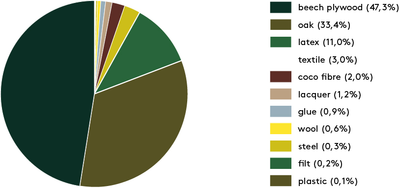 All our products are provided with a product eco passport. This is a clear overview of the product, with the composition of the materials and their percentages by weight.