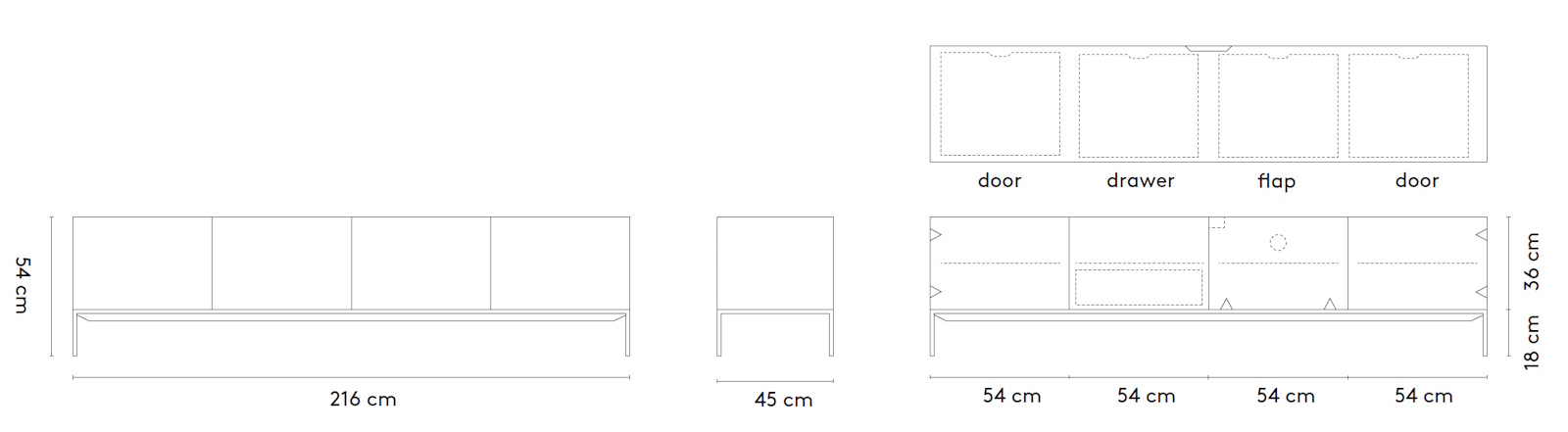 The Vision Selected 3 is a standing cupboard composed of repeating modules, each consisting of a drawer, a hinge and two doors. Vision Selected 3 is available in a single lacquer colour without accents. Color choices currently encompass white, beige, clay and black-grey.