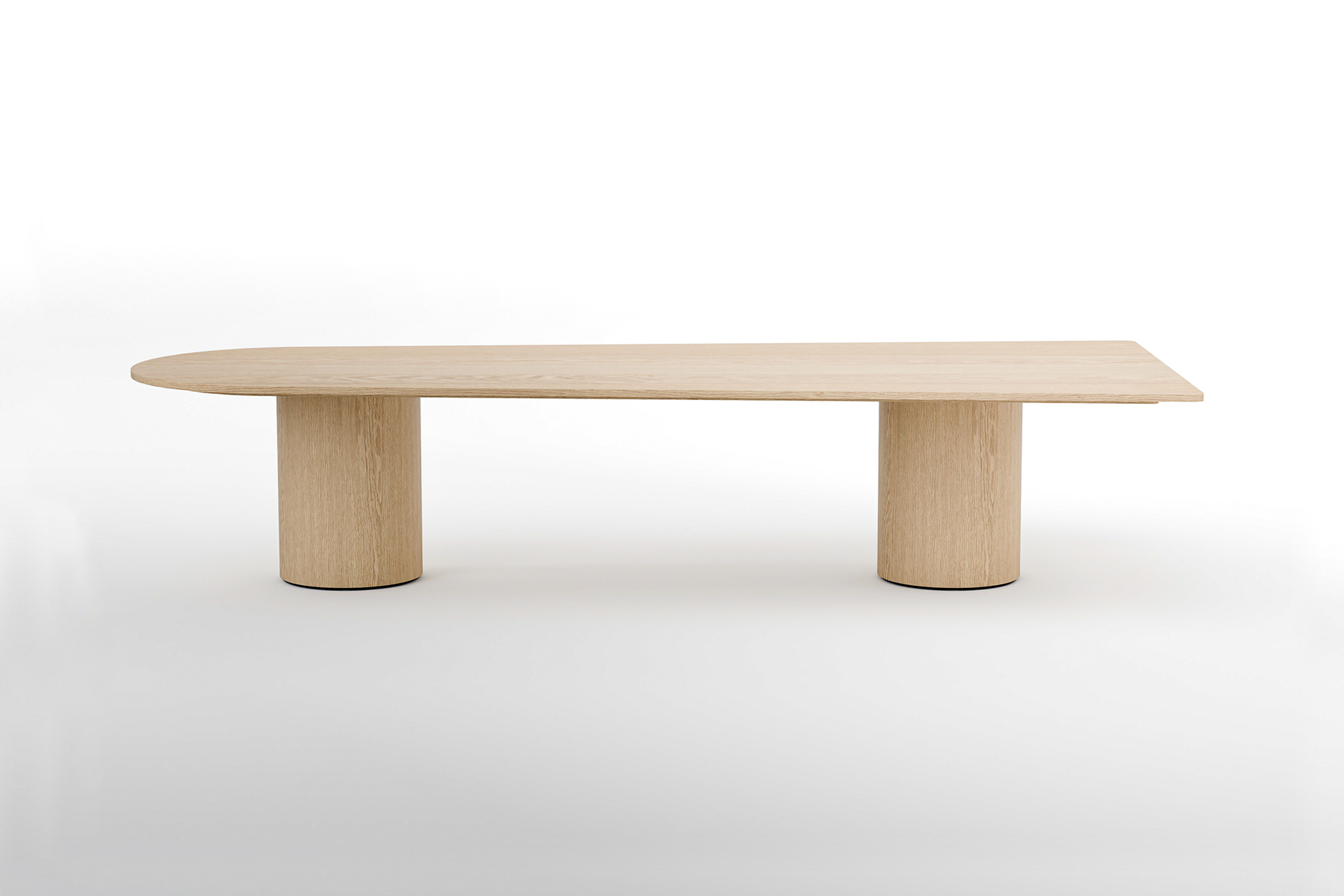 The Kami, by designer Joost van der Vecht, is a wooden modular table designed to be configured easily and according to your wishes, with endless length options in different shapes. From a small, intimate setting to a great eye-catcher in a meeting and boardroom environment. The solid wooden design table is available in an oval and round shape for both the columns and its tabletop, high and low. The modern table combines sustainable design and organic shapes into a timeless piece for the living and working environment.
