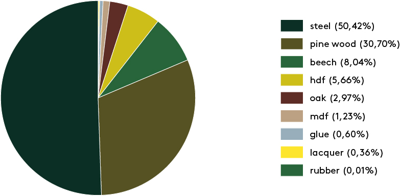 All our products are provided with a product eco passport. This is a clear overview of the product, with the composition of the materials and their percentages by weight.