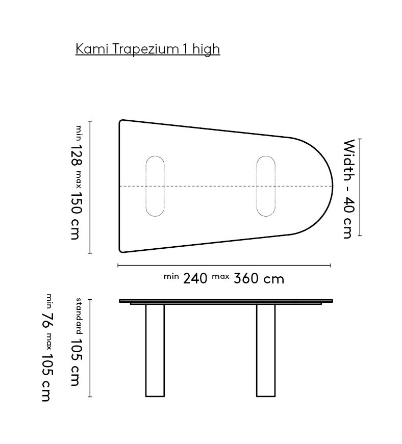 We continue to develop the Kami collection. The modular program now offers a high version. The Kami High is available with an oval, round and trapezium shape tabletop. With the additions of these sizes, the Kami collection becomes even more versatile.