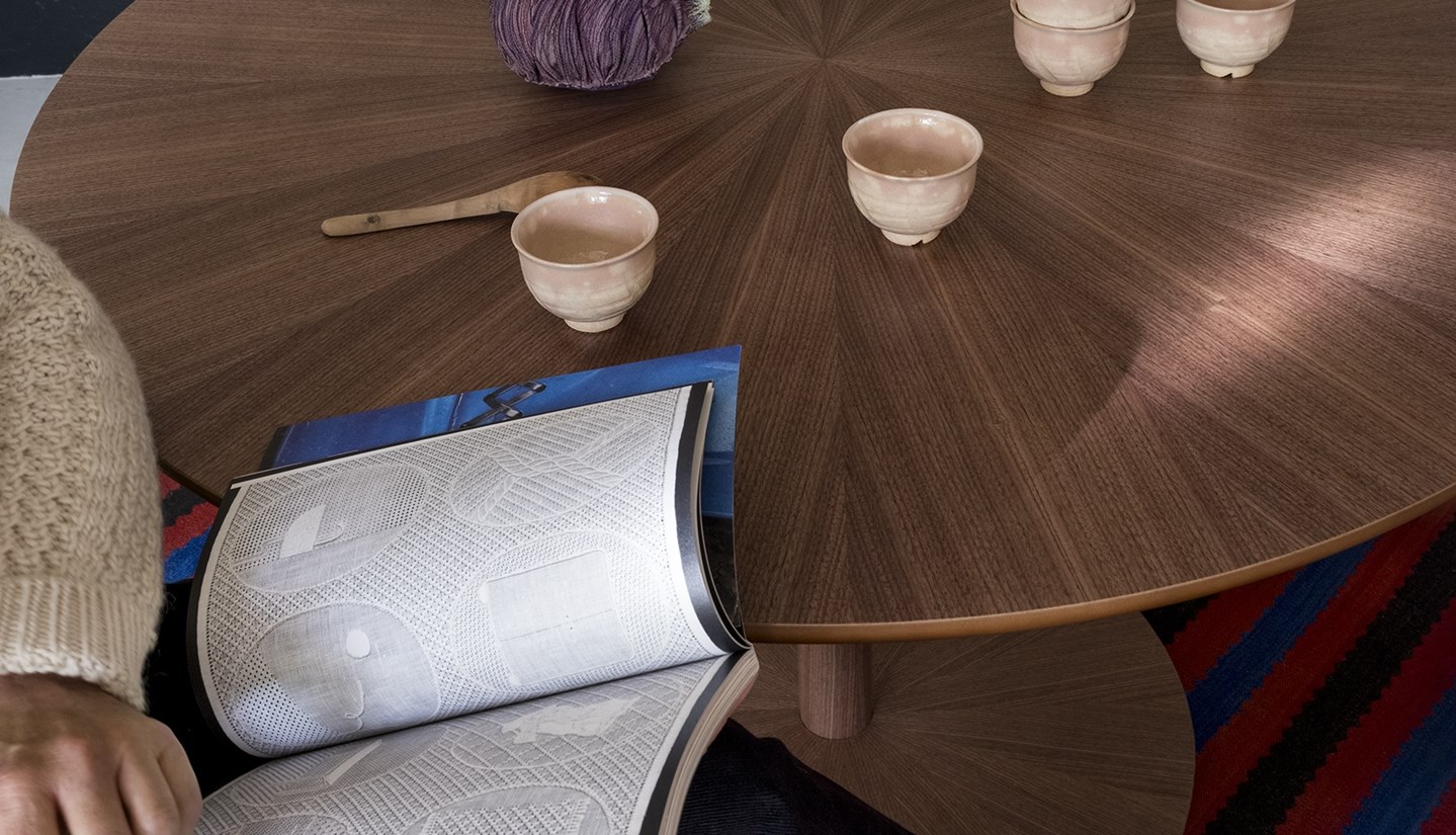 The Enso Product Family is available in solid wood or veneer. You can also order the Enso with starburst marquetry, inset into the tabletop. This isn’t the standard veneer finish; rather, it's a special variation, drawing on a technique in which veneer is cut from the heartwood of a tree - symmetrical but never identical. The starburst pattern isn’t a finish, but a proof of Arco’s skill and craft.