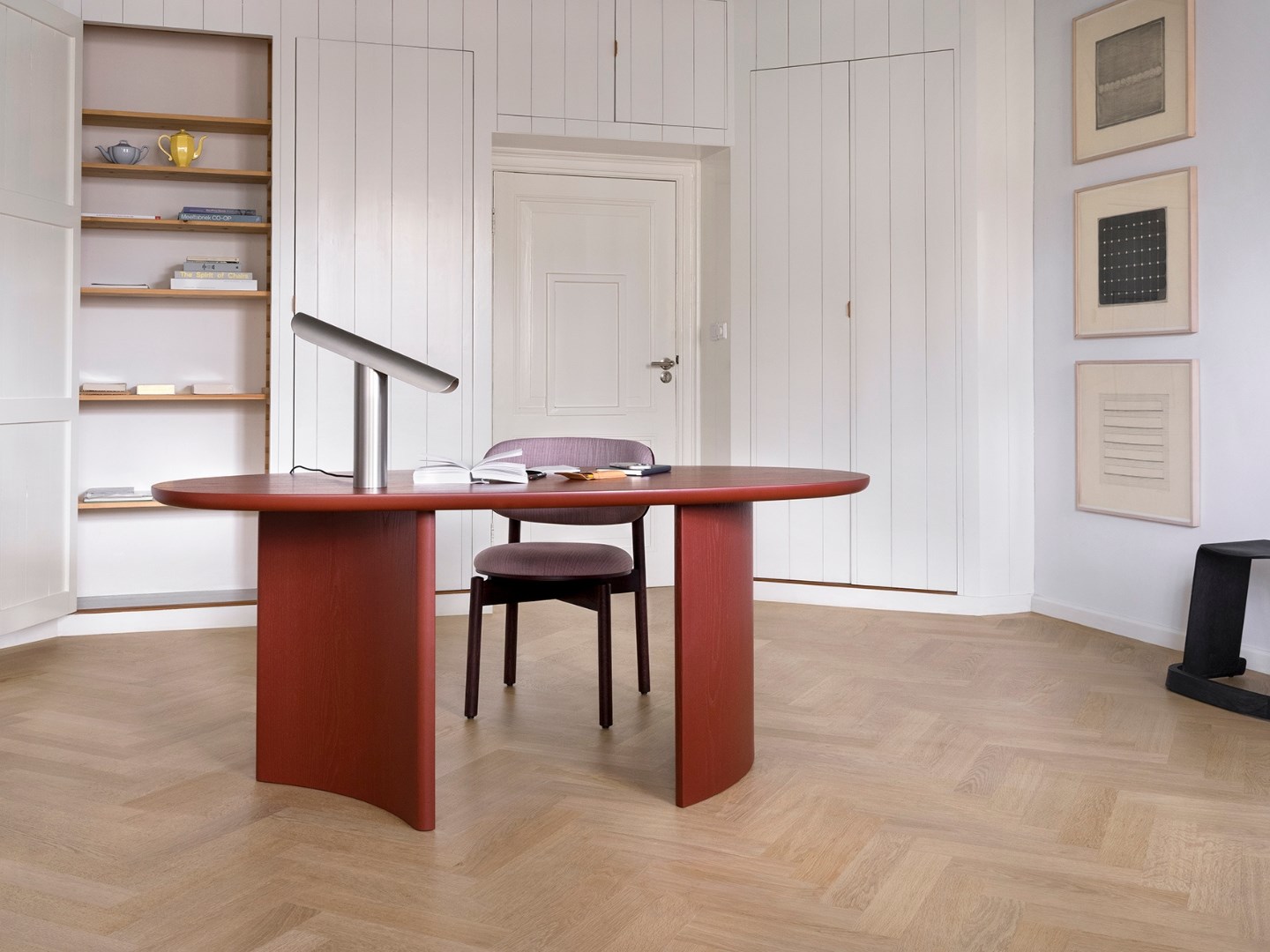 The family continued to evolve with two new additions. A side table: a flexible object that adds new possibilities to the Dew coffee table landscape, but works equally well next to a bed, sofa, or chair. Then the Dew Desk, available in three sizes. The small version functions as a secretaire, ideal for living rooms and hotel rooms. The larger sizes work as a desk, whether at home or in the workplace.