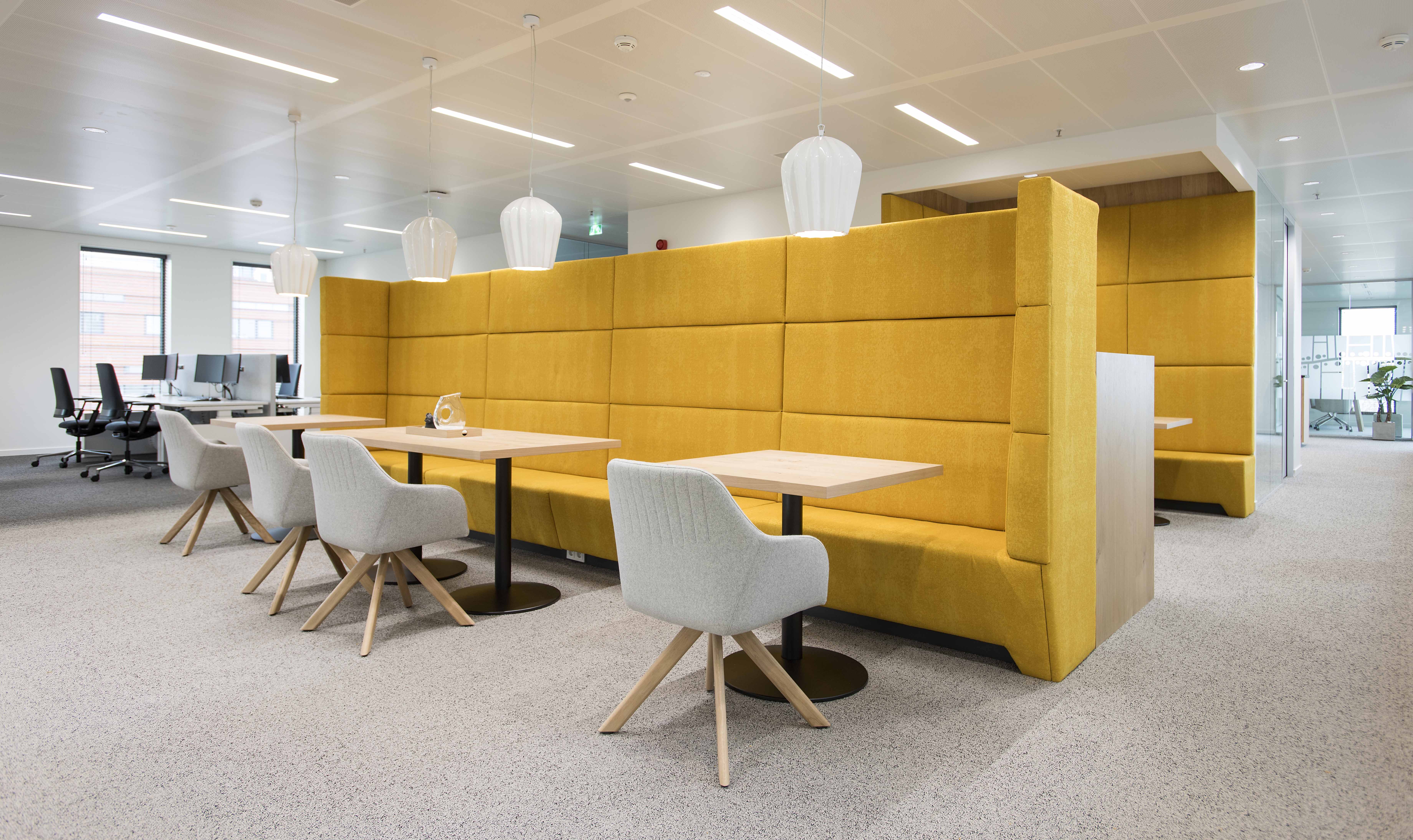 Voor het inrichten van de Rabobank Waalwijk maakte Desque Interieurconcepten onder andere gebruik van Ease stoelen, het Grid Work tafelprogramma en de Base Round tafel.
